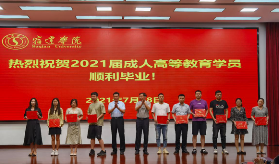 杜圣明院长发表了毕业致辞:他表示继续教育学院坚持“立德树人﹑质量为本﹑根植宿迁﹑服务社会”的办学理念,为宿迁经济社会的发展输送了许多优秀人才;对毕业生几年来勤恳的付出表示肯定,在继续教育学院全体师生的共同努力下,2021年继续教育学院成人高等教育取得了可喜的成绩:本科毕业率98.7%,学位授予率27.5%;向全体继续教育学院的毕业生表示祝贺,祝福所有毕业生前程似锦,鹏程万里,同时勉励大家以责任、创新、实践和持续学习的态度,不忘初心、牢记使命,在各自的工作岗位上勇于拼搏、砥砺前行。