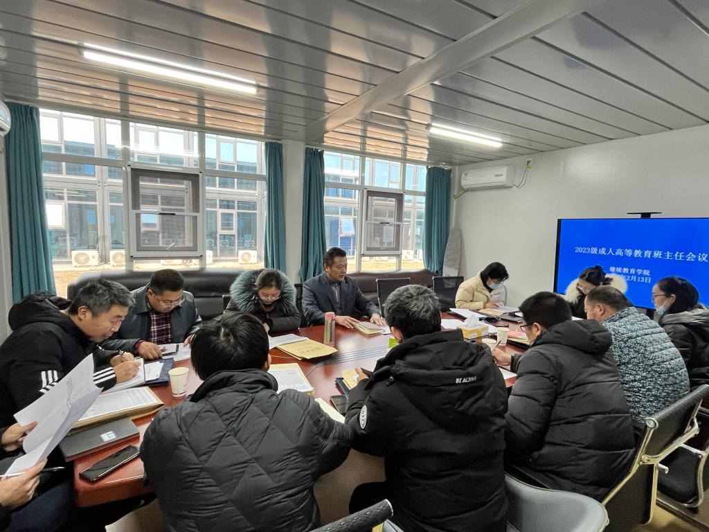 2月13日下午,继续教育学院2023级成教班主任会议在7108会议室召开,会议由杜圣明院长主持,2023级新聘班主任和继续教育学院相关科室负责人参加了会议。