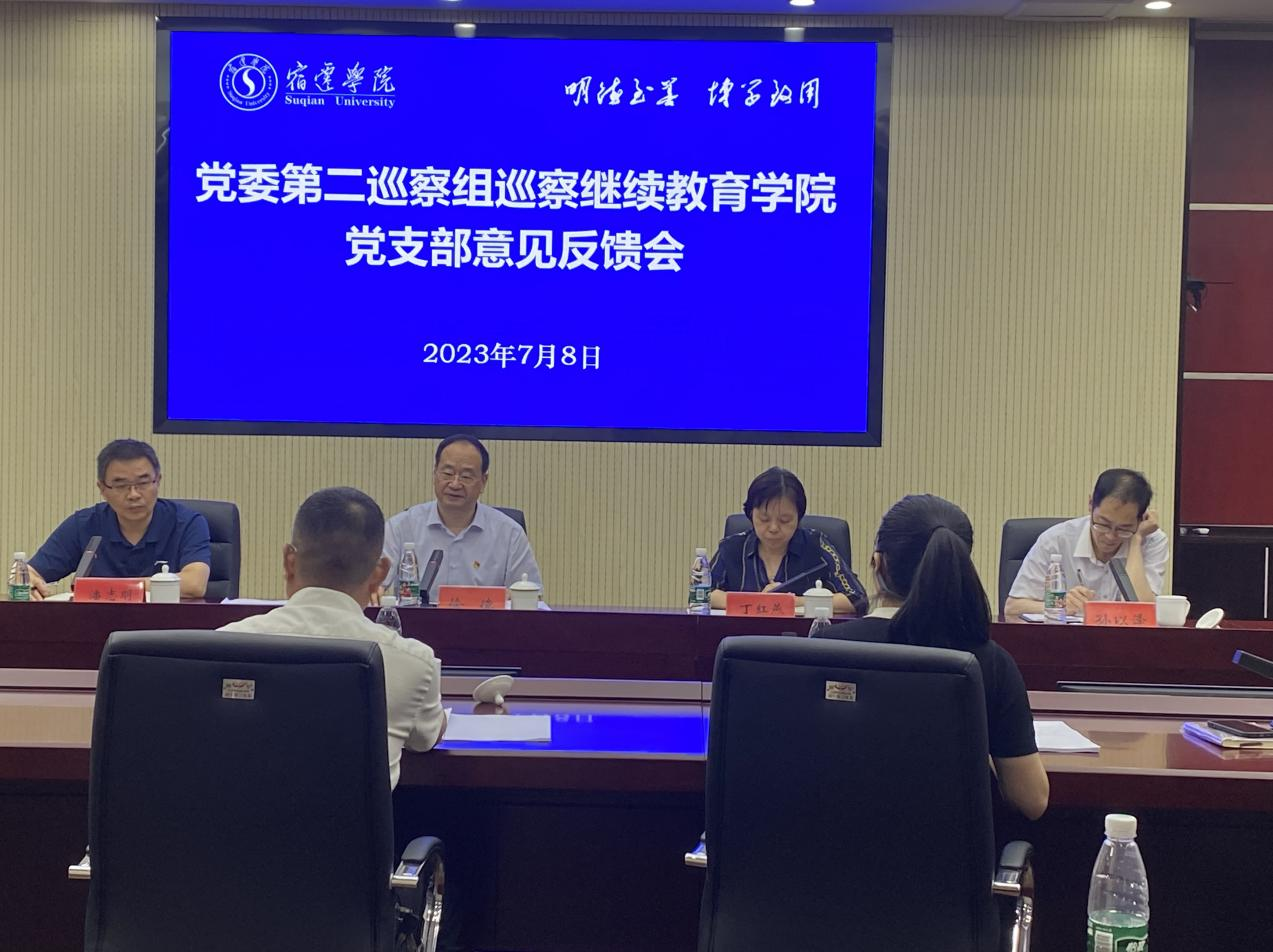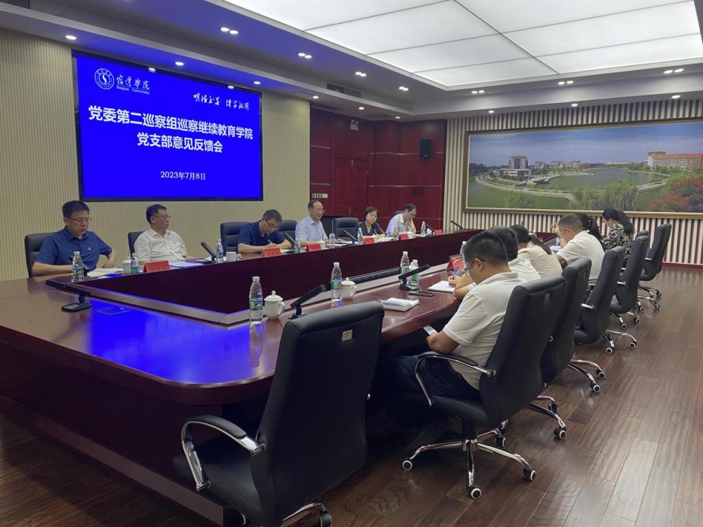 根据校党委巡察工作领导小组安排,2023年7月8日,党委第二巡察组向继续教育学院党支部反馈巡察情况。党委第二巡察组组长孙以泽代表巡察组向继续教育学院领导班子进行了反馈。会议由纪委刘立新书记主持,校党委书记徐德提出整改要求,继续教育学院党支部书记张进作表态发言。党委副书记、校长潘志明,党委常委、副校长丁红燕应邀出席会议并讲话,党委第二巡察组全体成员,继续教育学院全体教职工参加会议。