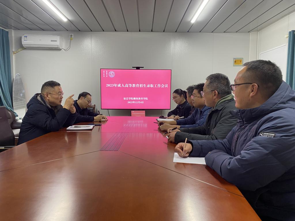 根据省考试院工作部署,2023年成人高考招生录取工作将于近期开展,为确保我校招生录取工作公平、公正、平稳、有序进行,12月4日下午,我校召开了2023年成人招生录取工作会议,会议由继续教育学院院长张进主持,招生录取工作小组成员、继续教育学院全体教职工参加了会议。