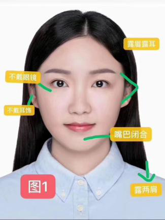 2)电子照片需显示双肩、双耳,露双眉,不得上传全身照、风景照、生活照、背带(吊带)衫照、艺术照、侧面照、不规则手机照等。
