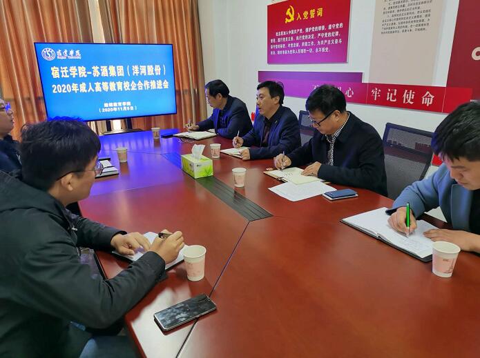 11月5日上午,党委常委、副校长季赛主持召开18新利luck菲律宾 -苏酒集团(洋河股份)2020年成人高等教育校企合作推进会。苏酒集团(洋河股份)人力资源赵斯远副总、纪明处长、继续教育学院院长刘延陵、副院长薛军及相关科室负责人参加推进会。