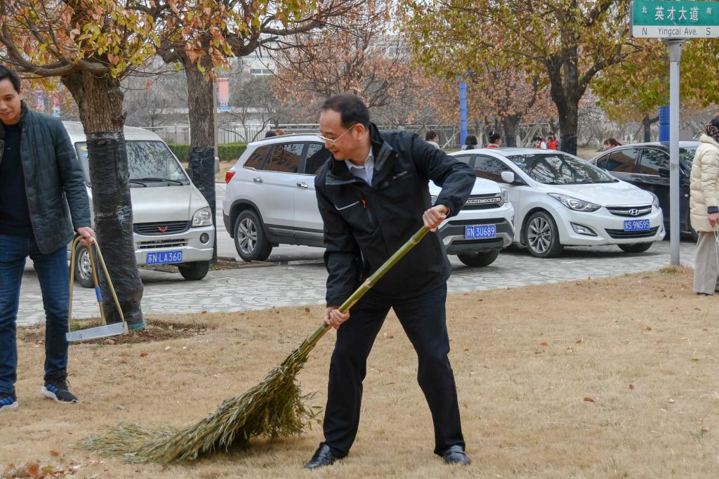 新学期开学在即,2月28日早晨,校党委书记徐德、校长刘志远等全体校领导带领100多名机关人员和大学生志愿者,分赴校内餐厅、英才大道等场所,开展义务劳动。