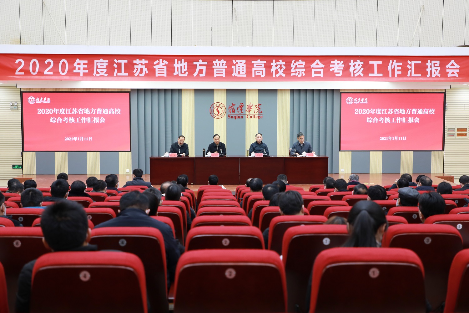 1月11日下午,省第九综合考核组来校开展2020年度综合考核工作,在我校新图二楼报告厅召开2020年度综合考核工作汇报会。省第九综合考核组组长陈章龙出席会议并讲话;校党委书记徐德主持会议,代表校党委领导班子述职,作个人述职;校长刘志远代表校行政领导班子述职,作个人述职。