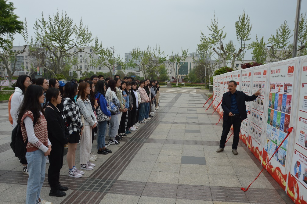 李明善书记说,今年正处于“两个一百年”奋斗目标历史交汇的关键节点,在校内开展党史学习教育是十分必要的。这些党史主题图片的展牌,不仅涵盖了党在过去百年里的感人故事,还囊括了中国共产党的精神谱系。