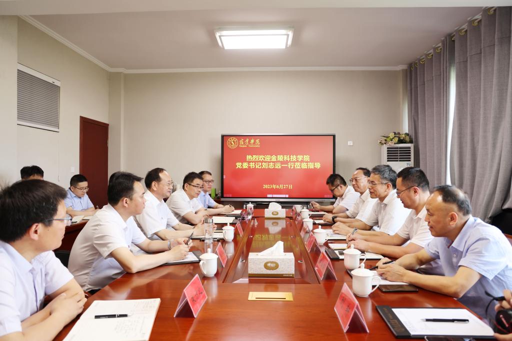 合光同尘助发展,栉风沐雨向未来。6月27日上午,金陵科技学院党委书记刘志远一行来校调研,我校在三楼会议室召开座谈会,校党委书记徐德、校长潘志明、副校长侍旭参加会议。