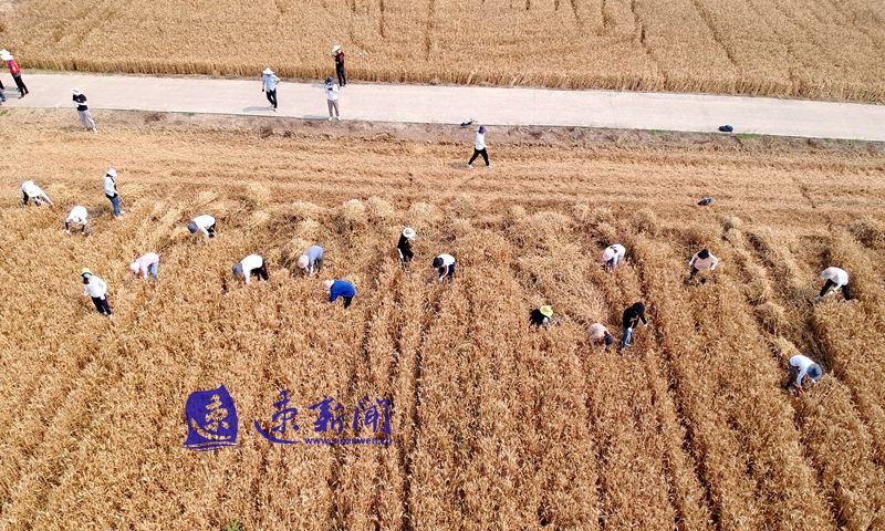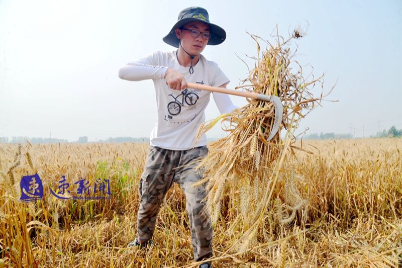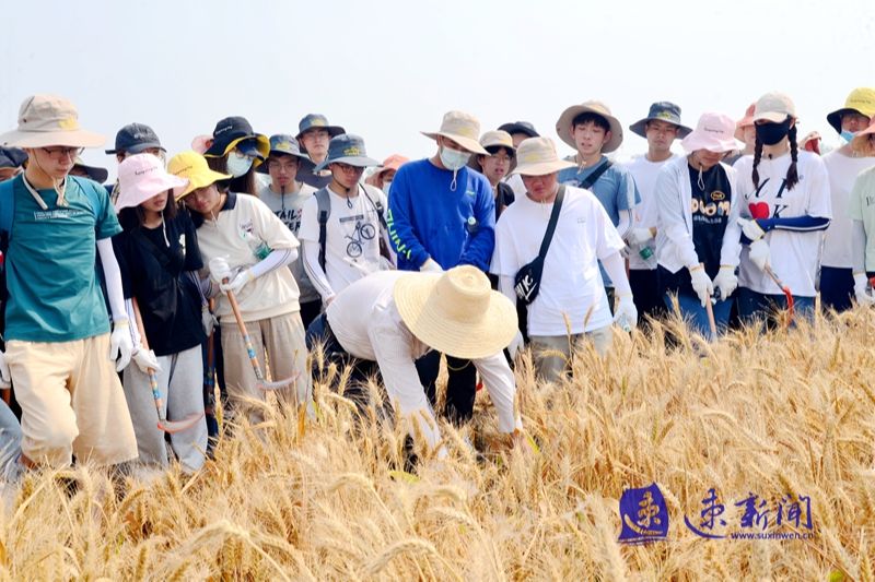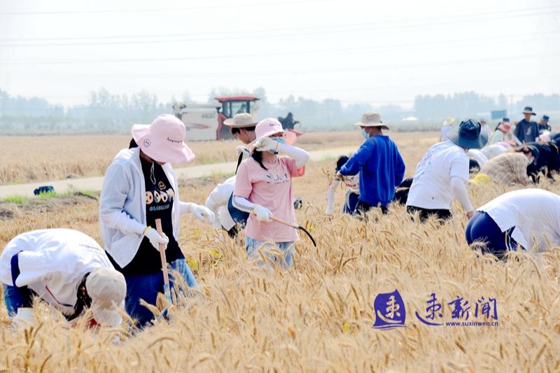 (速新闻记者王兵)握刀、下蹲、挥刀、割麦……夏日高照,麦浪涌涌,一群大学生挥舞镰刀收割小麦;田间地头处处涌动着热闹繁忙的景象,一张张青春洋溢的脸晒得通红……6月11日上午,18新利luck菲律宾 60余名师生,来到泗阳县湖滨粮食家庭种植农场,组织开展以“体验农耕文化 厚植劳动情怀”为主题的劳动教育实践活动,让大学生们切身体验农耕活动,感受农耕文化。