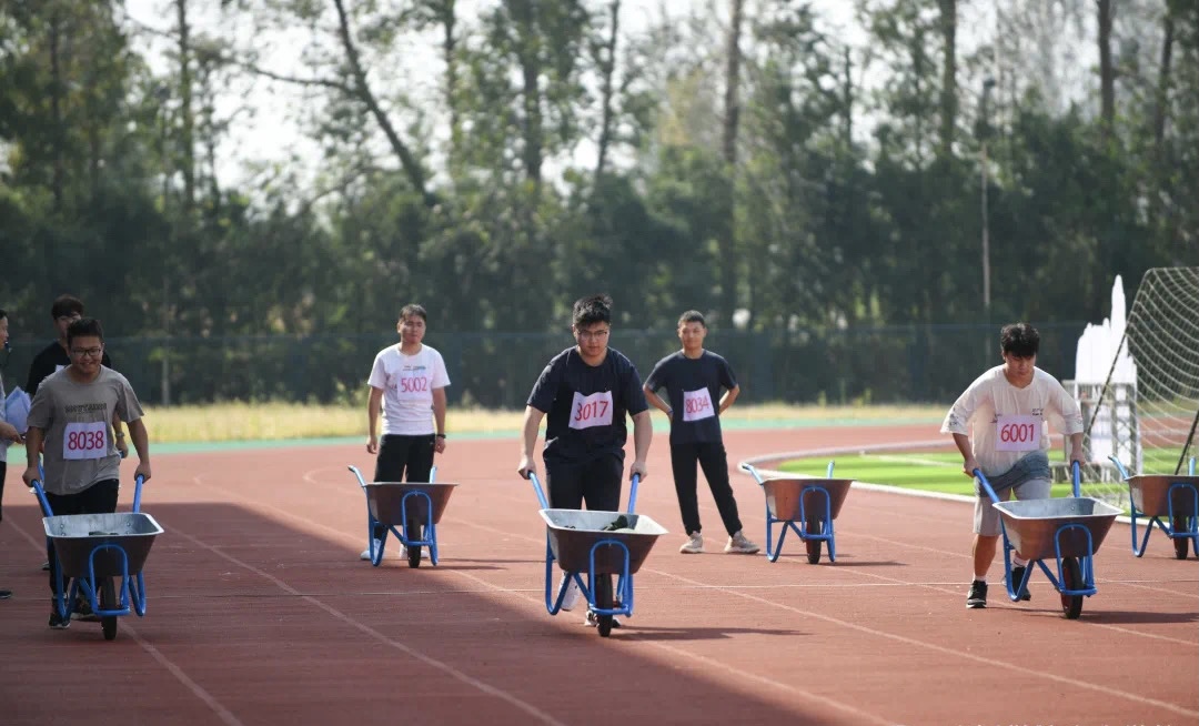 首届崇劳运动会在该校西田径运动场欢快举行,运动员们全神贯注手握车把,飞速驶向终点,欢呼声此起彼伏。