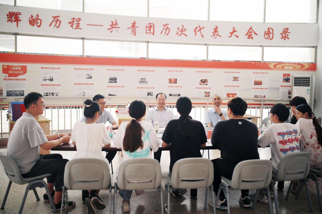 7月9日上午,在校学生会办公室,校党委书记徐德与各二级学院学生代表王世杰、李颖、夏高炎等8位同学亲切座谈。校党委副书记顾晓虎主持会议,