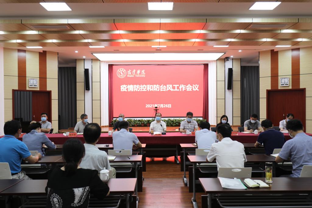 视频会议结束后,校党委书记徐德主持召开续会。会议简要回顾我校疫情防控和防汛防台工作开展情况,进一步分析和研判形势,要求各部门、各单位务必在思想上高度重视,畅通响应机制,细化工作措施,强化责任落实,加强隐患排查,加强物资储备,加强值班值守,确保师生安全和校园安全。