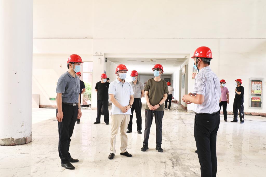 为进一步推进暑期各项工程建设,8月9日下午,校领导徐德、刘志远、顾晓虎、施正荣、田一聚、刘立新、李震以及有关部门主要负责人实地检查2、3、4号教学楼,信息化建设与管理中心,田径运动场观礼台,篮球场,9号学生宿舍楼等建筑工地。随后,召开暑期工程建设推进会。会议听取了后勤处(基建处)工作汇报,充分肯定前一阶段工作,并对下一阶段工作提出要求。一要倒排工期抢进度。要从严从快咬定目标任务,主动克服天气和疫情等不利因素,确保新学期开学前如期完成各项任务。二要加强监管保安全。坚持安全第一,做到疫情防控标准不降低、服务保障更优化;施工安全不放松,严格按照规范流程落细落实;确保学校财产和师生人身安全。三要严格合同抓质量。一丝不苟对照合同和兑现合同,进一步严格质量标准。四要协同配合强保障。关联部门都要主动靠前、积极参与、贴心服务。五要超前谋划建机制。要超前谋划新学期开学工作和新生报到工作,充分做好工作方案和应急预案,进一步优化机制和制度。