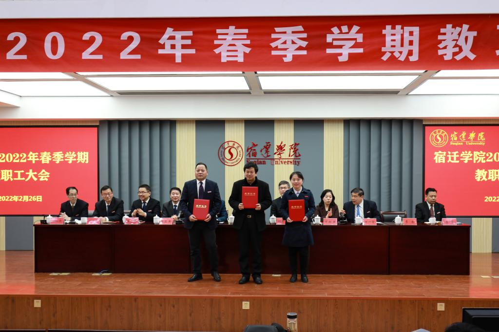 2月26日上午,我校召开2022年度春季学期教职工大会,主要目的是全面总结去年工作,安排部署今年任务,凝心聚力、背水一战,以必胜的姿态决战合格评估,以必成的目标建功“二次创业”。全体校领导出席会议,校党委书记徐德作题为《决战合格评估 建功“二次创业”》的讲话,校长刘志远作题为《聚焦合格评估 强化内涵建设 全面推进学校高质量发展跨越赶超》的报告,校党委副书记顾晓虎主持会议,副校长丁红燕、施正荣分别宣读有关表彰决定。