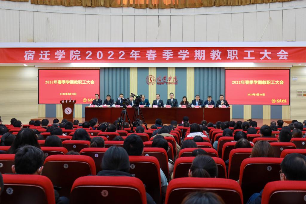 建校二十周年,更是我校迎接合格评估的决战决胜之年,做好今年工作意义重大、影响深远。全校上下要充分认清担负的历史使命,踔厉奋发、笃行不怠,赓续前行、奋楫争先,汇聚起决战合格评估、建功“二次创业”的强大力量。决战合格评估、建功“二次创业”必须要提高政治站位,始终沿着正确政治方向前进;必须要聚焦重点难点,确保迎评工作高标准通得过;必须要秉承“三为”方针,努力办人民满意的高等教育;必须要坚持扎根宿迁,不断提升服务地方能力水平;必须要强化组织保障,营造“大抓落实、大干快上”浓厚氛围。让我们更加紧密地团结在以习近平同志为核心的党中央周围,不忘初心、牢记使命,踔厉奋发、砥砺前行,努力实现高标准评估“通得过”、高效能治理“转到位”、高质量发展“快进位”的“三高”目标,以实际行动迎接党的二十大胜利召开!