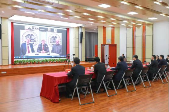 3月24日下午,我校在新图书馆一楼学术报告厅与俄罗斯雅罗斯拉夫国立师范大学举行合作办学项目远程视频推进会。校长刘志远、副校长田一聚;雅罗斯拉夫国立师范大学校长格鲁兹杰夫·米哈伊尔·瓦迪莫维奇,副校长霍德列夫·亚历山大·米哈伊洛维奇、索洛维约夫·米哈伊尔·尤里耶维奇以及我校相关部门负责人参加视频会。