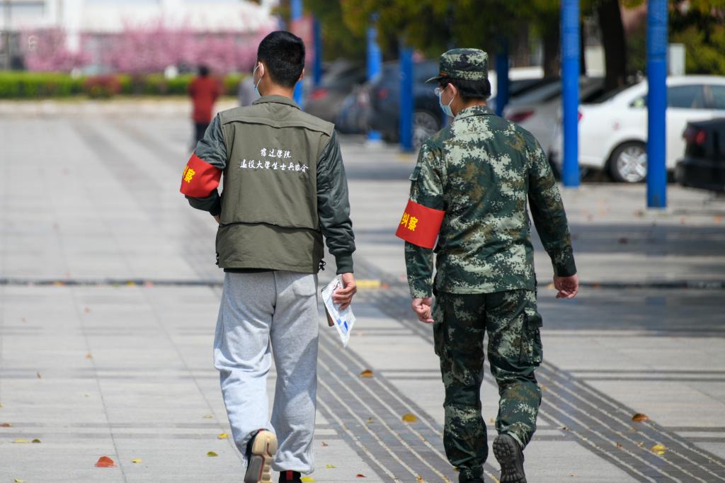 “我们每天校内全方位巡逻、严查校园每个角落,确保闭环管理期间校园生活安全、有序,筑起保障学生安全的‘铜墙铁壁’。”退役大学生士兵协会主席杨颂慷慨激昂的说。