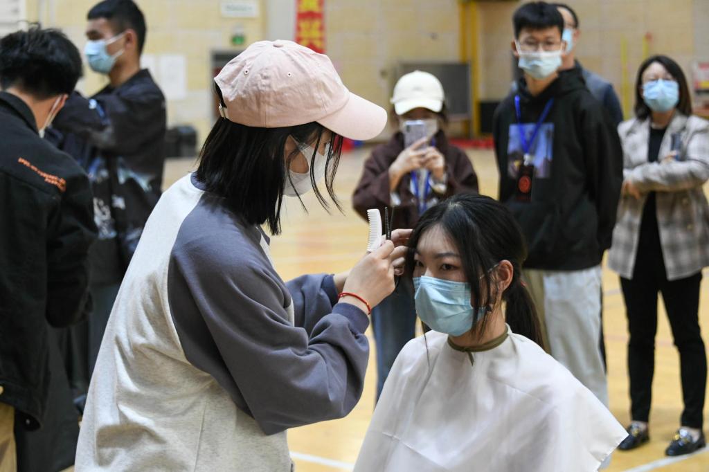 4月20日下午,学校体育馆主馆,在做好各项疫情防控措施的前提下,迎来了一批“校园理发师”和师生“顾客”。短短一个小时左右,40多名师生享受了一次难忘的理发体验。