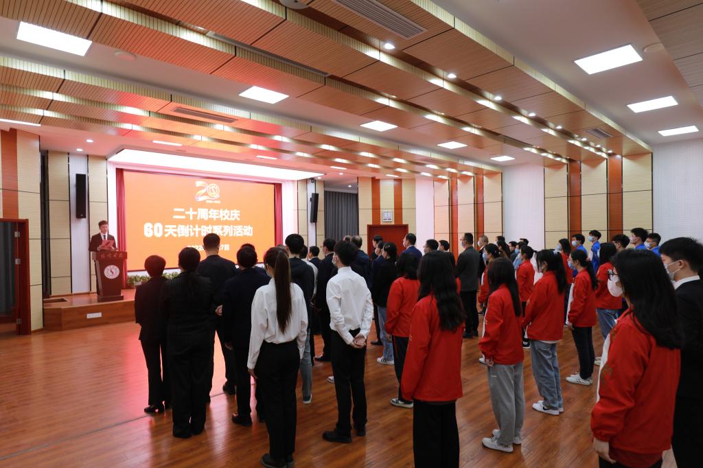 4月27日下午,我校在新图学术报告厅举行建校二十周年60天倒计时系列活动。校党委副书记顾晓虎出席活动,副校长季赛主持活动,校党委常委、宣传部部长孙以泽和部分中层干部、师生代表参加活动。