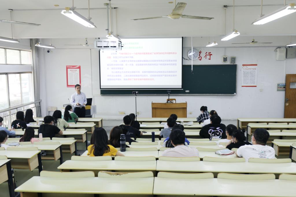 校长刘志远在2104教室为同学们讲授“生态文明的新时代——中国的碳中和之路”专题。他围绕全球气候变化带来的危机和国际社会的应对,中国的碳中和宣言及碳中和的重要意义,碳达峰、碳中和工作的总体要求和主要目标,碳达峰、碳中和工作的具体措施,绿色低碳生活从我做起进行教学。