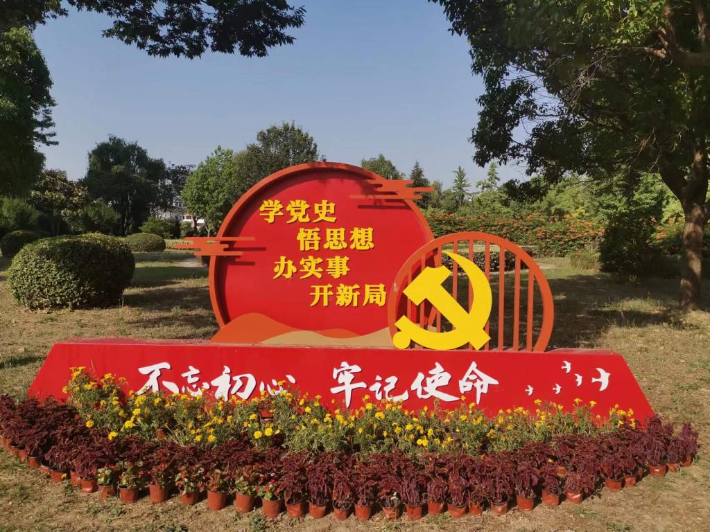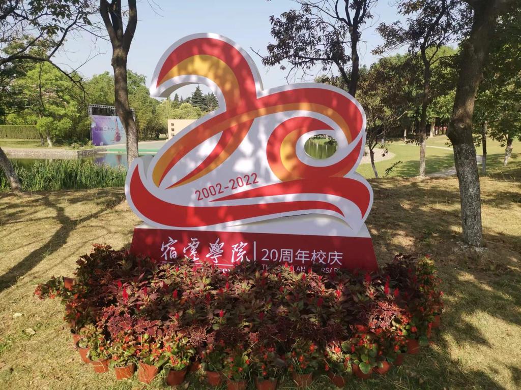 忽如一夜,花草盈园。截至6月7日中午,学校行政楼、一号教学楼、求索楼、东大门等主要学校场所6525盆花草摆放完毕,校园草坪显眼处还摆放9件以校庆20周年Logo为主题的标志牌。