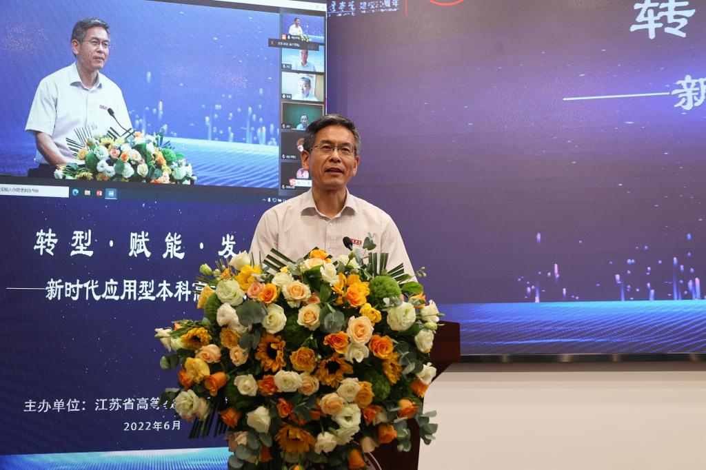 6月25日,为庆祝建校20周年,由江苏省高等教育学会和我校联合主办的“转型 赋能 发展——新时代应用型本科高校发展论坛”,以线上线下相结合的形式在我校求索楼报告厅举行。校长刘志远出席活动并讲话,副校长丁红燕、季赛和各部门各单位负责人、骨干教师代表出席会议,副校长田一聚主持会议.