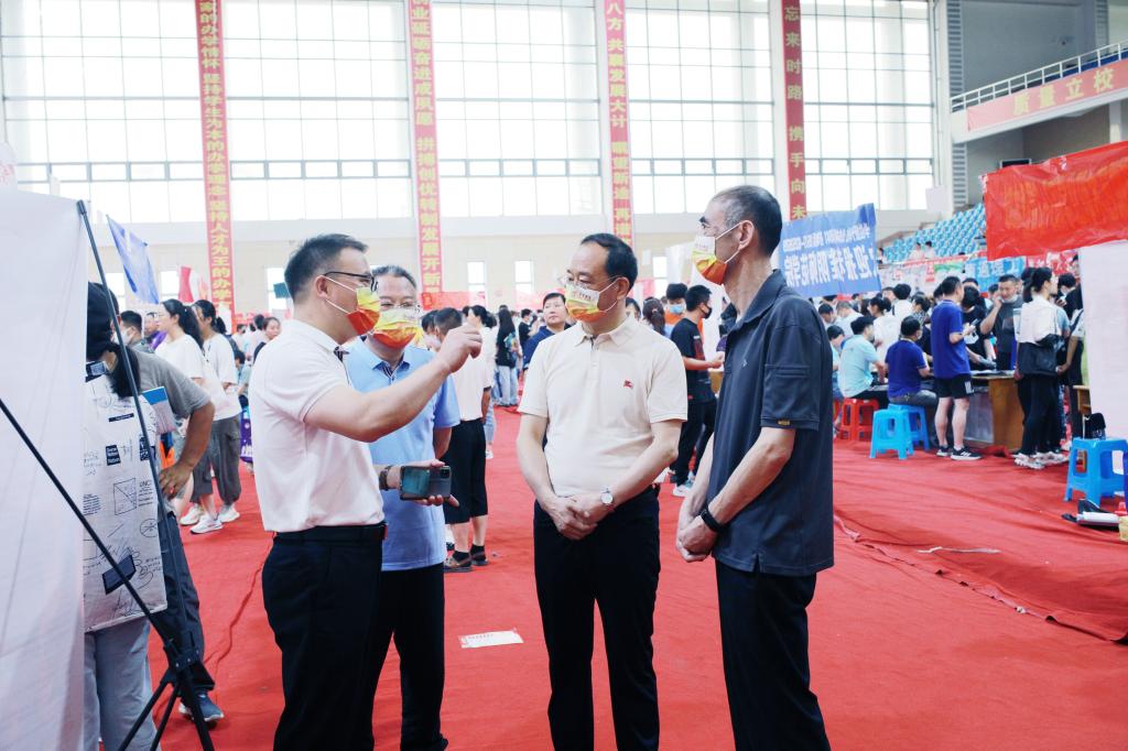 6月27日上午,我校举办的“宿迁地区2022年高考考生职业生涯与志愿填报指导咨询会”在校体育馆主馆举行。校党委书记徐德、副书记顾晓虎到现场检查指导工作。