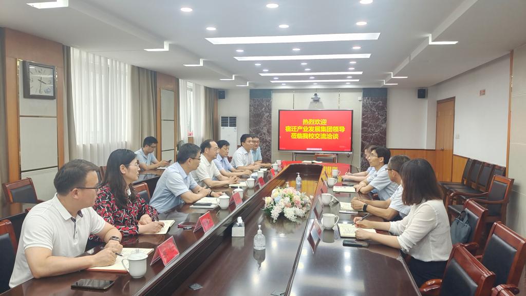 7月14日下午,校党委书记徐德会见宿迁产业发展集团董事长杨卫国一行。副校长潘志明、宿迁产业发展集团副总经理王兰建出席会议,双方相关部门负责人参加会议。