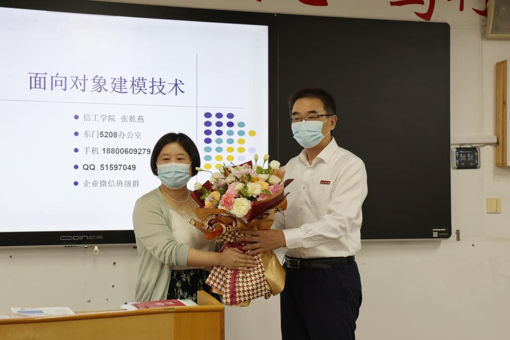 校长潘志明慰问了信息工程学院张乾燕老师,提前祝她教师节快乐,并勉励同学们要珍惜青春时光,勤思笃学,同时要做好疫情防控,愉悦身心。