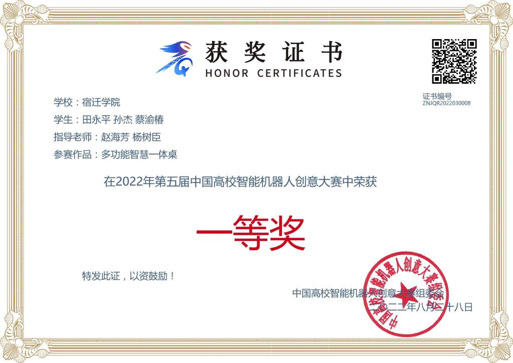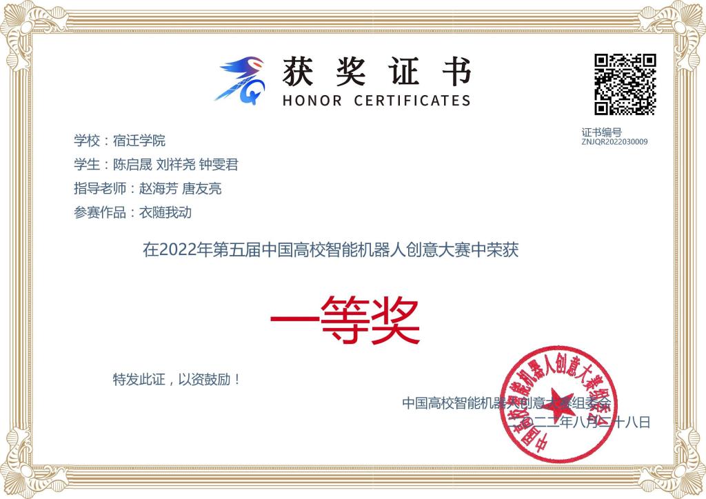 中国高校智能机器人创意大赛是《全国普通高校学科竞赛排行榜》A类赛事之一。大赛将机器人创意设计、创意竞技、创意对决融为一体,旨在推进学生创新意识和创造能力培养。本届大赛共吸引全国426所高校、4000多支队伍、近1.5万人报名参赛。大赛采用区域赛和全国赛两级赛制,历时9个月。荣获一等奖的参赛作品分别是我校19级机制2班田永平团队的《多功能智慧一体桌》,19级机制2班陈启晟团队的《衣随我动》,二等奖的作品是21级智造1班杨晓天团队的《一种可移动及自动打包家用智能垃圾桶系统设计》。