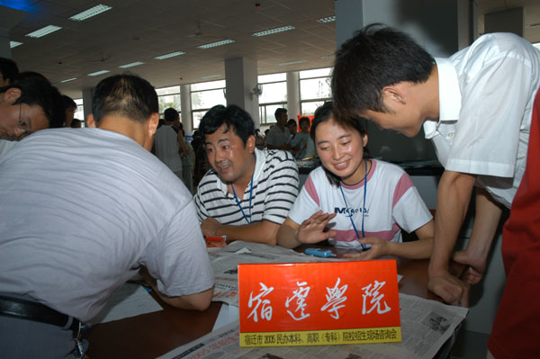 7月25日,2005年江苏省高校招生第二次填报志愿宿迁市咨询会在我院(新图书馆)举行。
