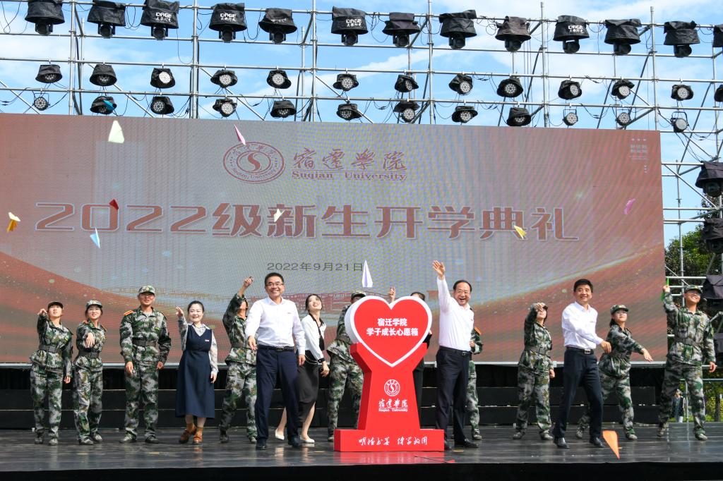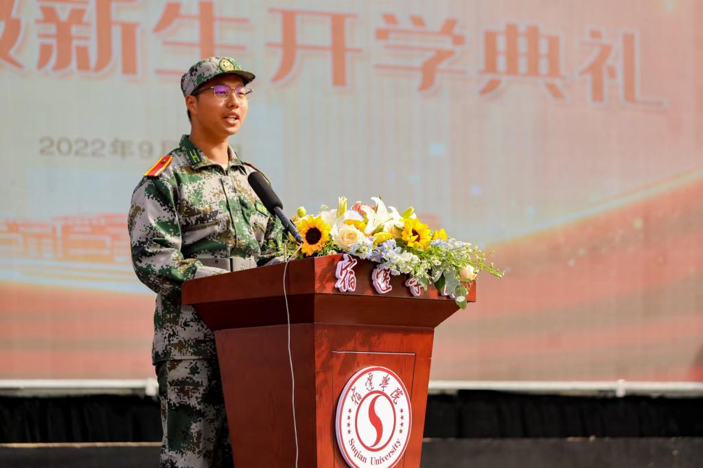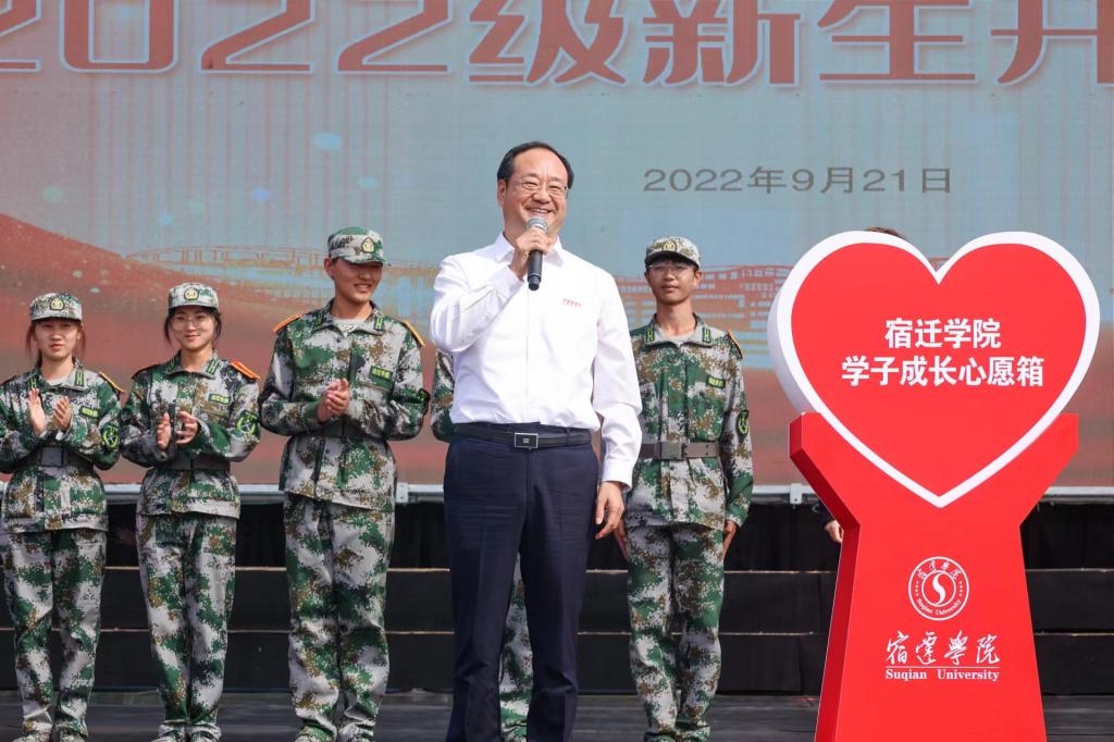 徐德书记代表全校教职工向全体新生郑重承诺:在未来四年的大学生活中,在筑梦、追梦、圆梦的征途中,学校将始终秉承“学生为本”的办学理念,为同学们遮风挡雨、开山辟路,为同学们加油鼓劲、保驾护航。真诚期盼通过共同努力,让今天许下的成长心愿,在宿院大地生根发芽,开花结果,梦想成真。
