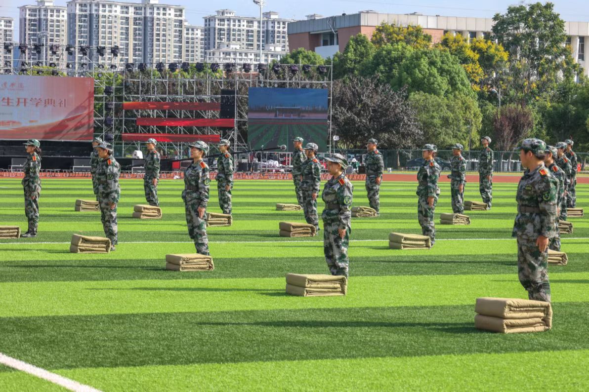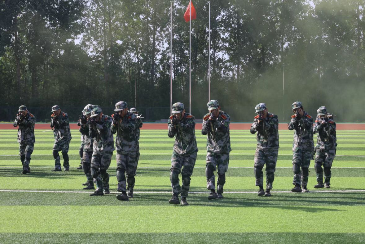 典礼前,全体新生身着戎装,整齐列阵,上演了一场“全要素、实战化、情景式”的军训汇报表演,同学们熟练的军事技能和干练的表现,赢得了全场阵阵掌声,得到了校领导和承训教官的一致好评。