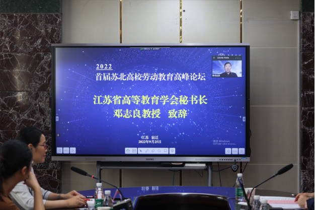 承办的首届苏北高校劳动教育高峰论坛在我校成功举行。论坛采取线上线下相结合方式进行,我校丁红燕副校长致欢迎辞,江苏省高等教育学会劳动教育研究委员会田立新理事长、江苏省高等教育学会邓志良秘书长出席论坛并致辞,论坛由我校教务处副处长(主持工作)陆海霞主持。