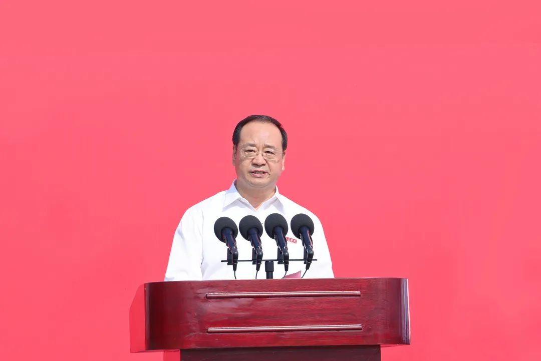 市委副书记、市长陈忠伟,市人大常委会主任、党组书记王益,市委副书记、统战部部长杭海,校党委书记徐德,校长潘志明共同为新校区开工培土奠基。相关市领导,校领导班子全体成员,市直有关部门和单位主要负责同志等参加相关活动。校党委书记徐德致辞。
