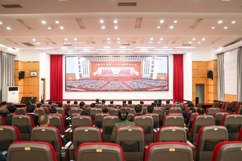 校党委书记徐德、校长潘志明等校党委理论学习中心组全体成员、非党员校领导、全体中层正职干部集中在求索楼报告厅收看党的二十大开幕会实况直播。学校各基层党委(党总支、直属党支部)采取各种形式,在多个会议室、教室、党员活动室等场所同步组织师生代表收看开幕会盛况。此外,师生还自发通过电脑、智能手机等平台观看开幕会直播。