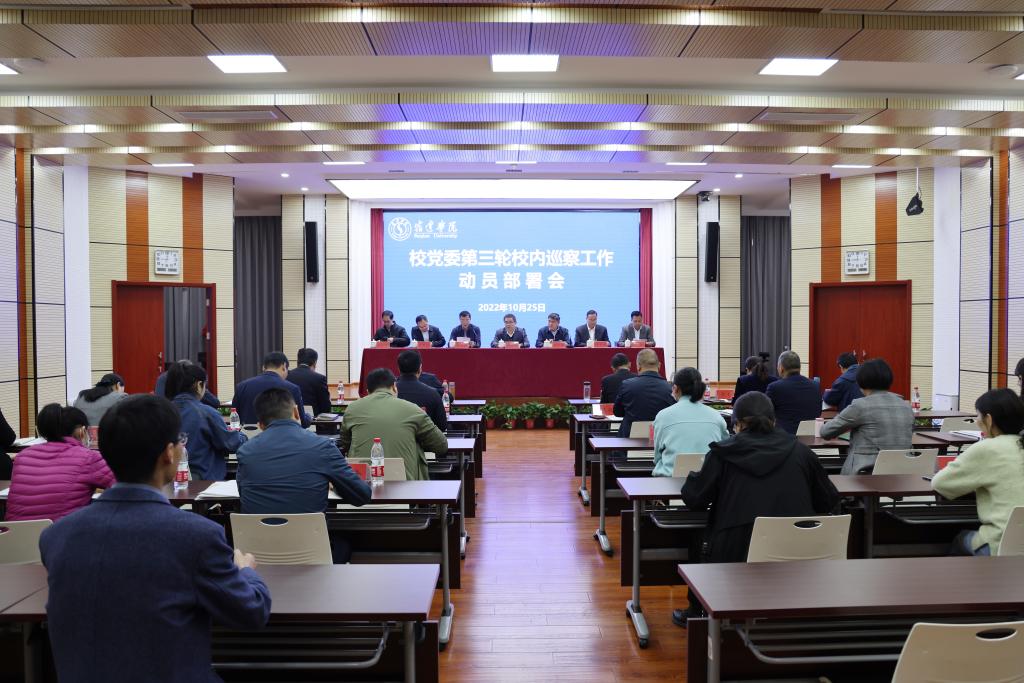 为深入学习贯彻党的二十大精神、认真把握中央和省委有关巡视巡察工作的总体要求,跟进落实校第二次党代会确定的目标任务,10月25日上午,校党委第三轮巡察动员部署会在图书馆学术报告厅举行。校党委副书记、校长、巡察工作领导小组副组长潘志明作动员讲话,校党委副书记、巡察工作领导小组副组长田一聚宣读本轮巡察组组长、副组长授权决定及任务分工,校党委常委、纪委书记刘立新主持会议并介绍本轮巡察工作节点安排。