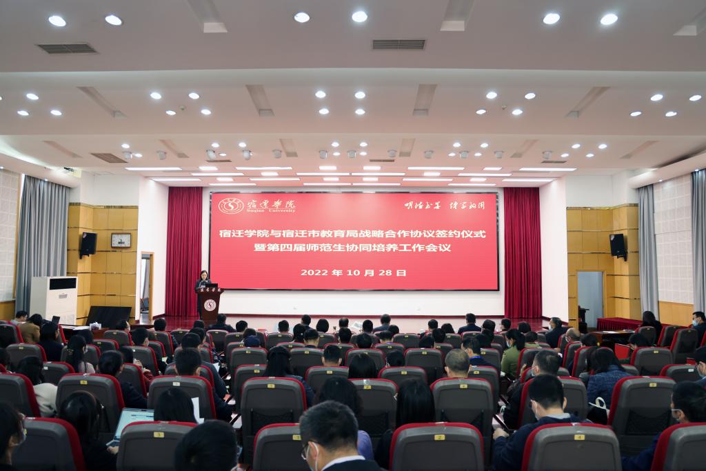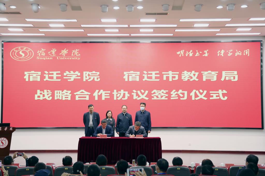 为深入学习宣传贯彻党的二十大精神,贯彻落实《中共宿迁市委 宿迁市人民政府关于支持18新利luck菲律宾 高质量发展意见》,推进我校服务宿迁“三联三融”“十大星火计划”,加强校地深度合作与共同发展,提高我校师范生培养质量,10月28日上午,我校与市教育局战略合作协议签约仪式暨第四届师范生协同培养工作会议在求索楼报告厅成功举行。校党委书记徐德、校长潘志明、纪委书记刘立新,宿迁市委教育工委书记、市教育局局长倪成城等领导出席签约。会议由副校长丁红燕主持。