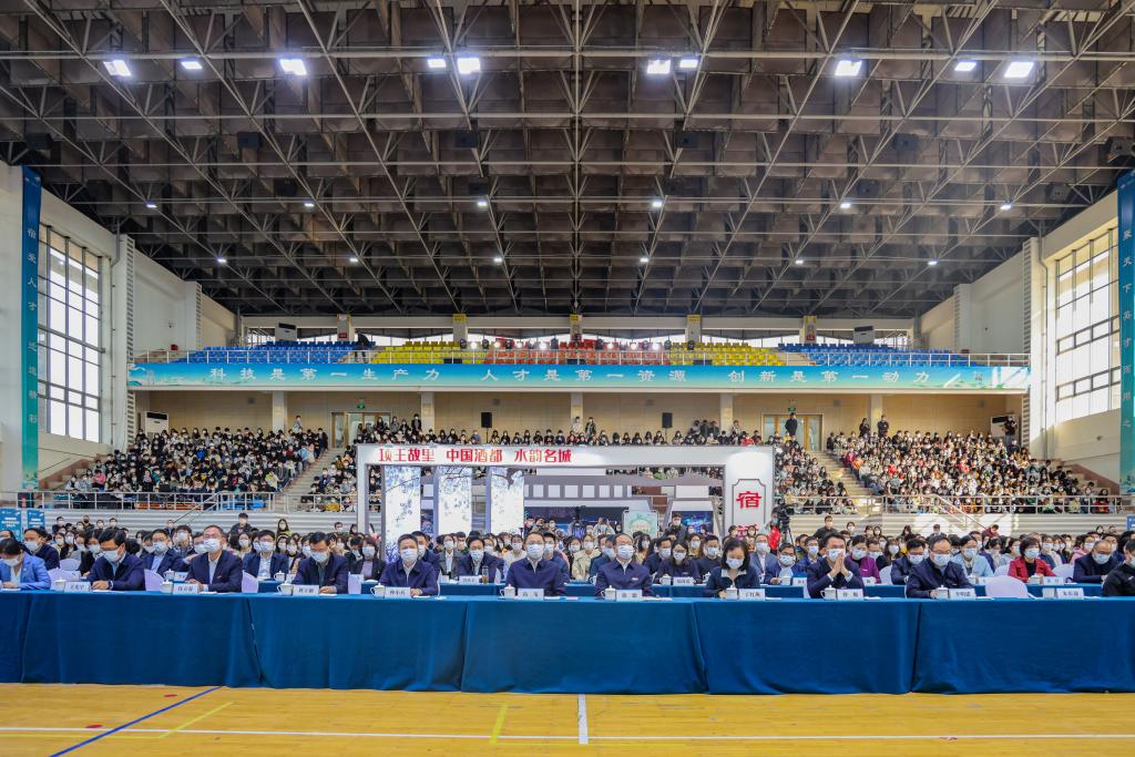 高飞常委围绕“选择”,用三句话向同学们发出诚挚邀约。他表示,在“择校”的路口选择宿迁,收获的是一份弥足珍贵的情谊,在这里结下了深厚的宿迁缘、师生情、同窗谊,希望同学们用实际行动让宿迁这座城市更富活力、更加美好。在“择业”的路口选择宿迁,踏上的是一方施展才华的热土,这里有浓厚的创新创业氛围,能给初入职场的毕业生扶上马、送一程。在“择城”的路口选择宿迁,成就的是一场未来可期的人生,蕴含无限发展潜能,拥有巨大发展空间。高飞希望广大宿院学子能够留在宿迁、扎根宿迁,做宿迁发展的“合伙人”,共同谱写“强富美高”新宿迁现代化建设新篇章!