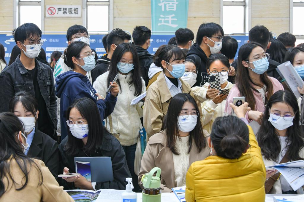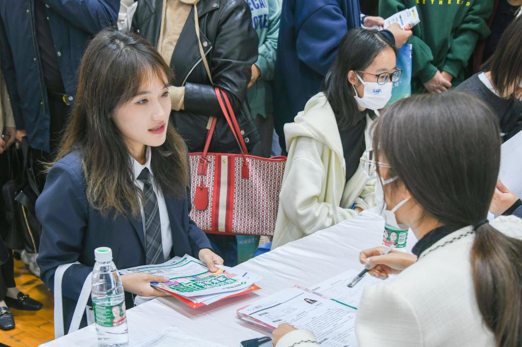 启动仪式结束后,我校2023届3000余名在校毕业生分批、有序进入招聘现场。招聘会现场气氛热烈,在展位的醒目位置,用人单位和企业统一摆放了信息展架,学子们通过信息展架了解招聘信息、各岗位福利待遇等相关信息,仔细挑选合适的岗位。