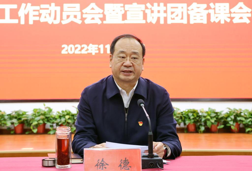 为深入学习贯彻党的二十大精神,11月17日上午,我校在学术报告厅召开学习贯彻党的二十大精神宣讲工作动员会暨宣讲团备课会。校党委书记徐德作动员讲话,校党委副书记田一聚主持会议。会上,校党委常委、宣传部部长、马克思主义学院院长李明建作具体工作部署。