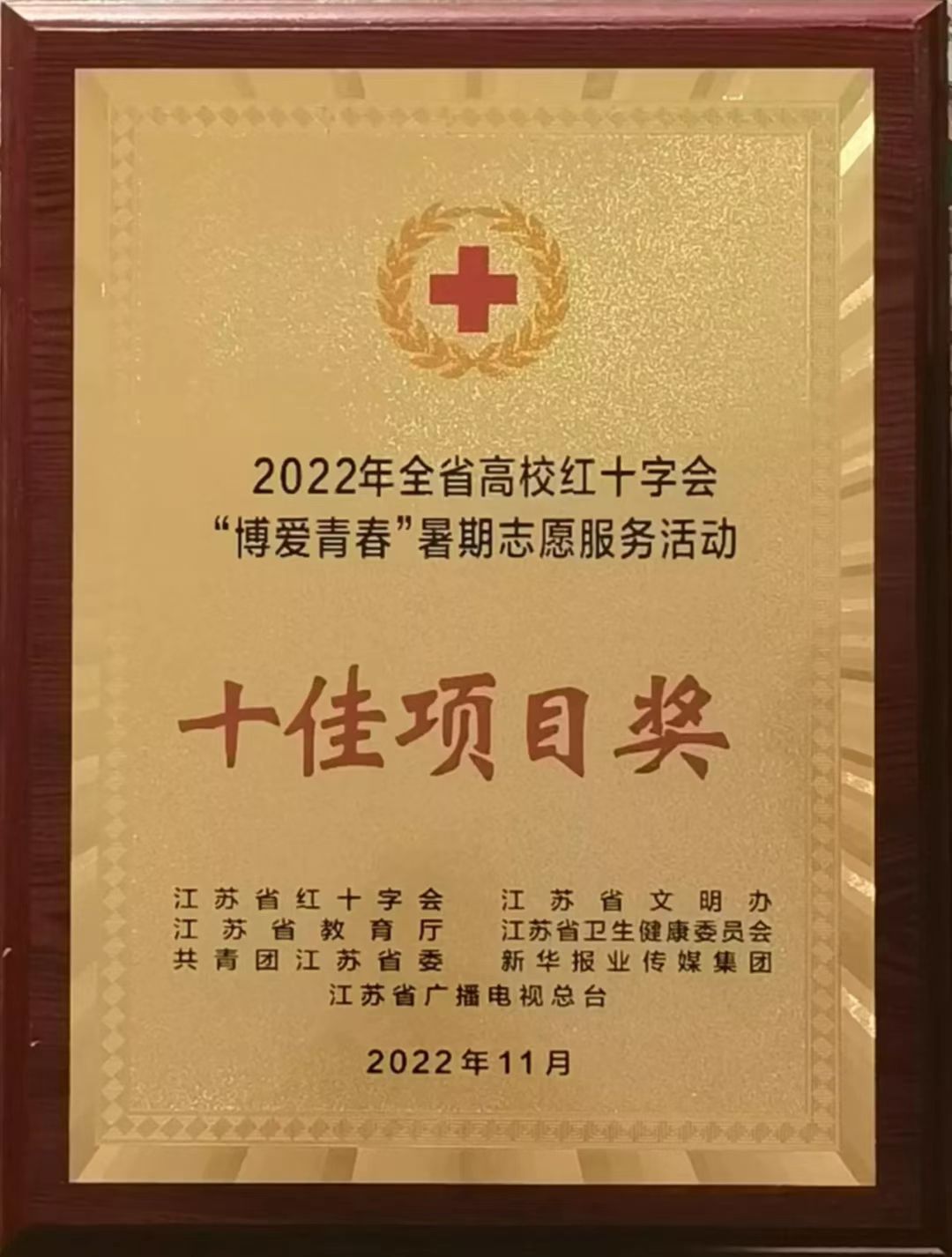 我校荣获2022年全省高校红十字会“博爱青春”暑期志愿服务“十佳项目奖”