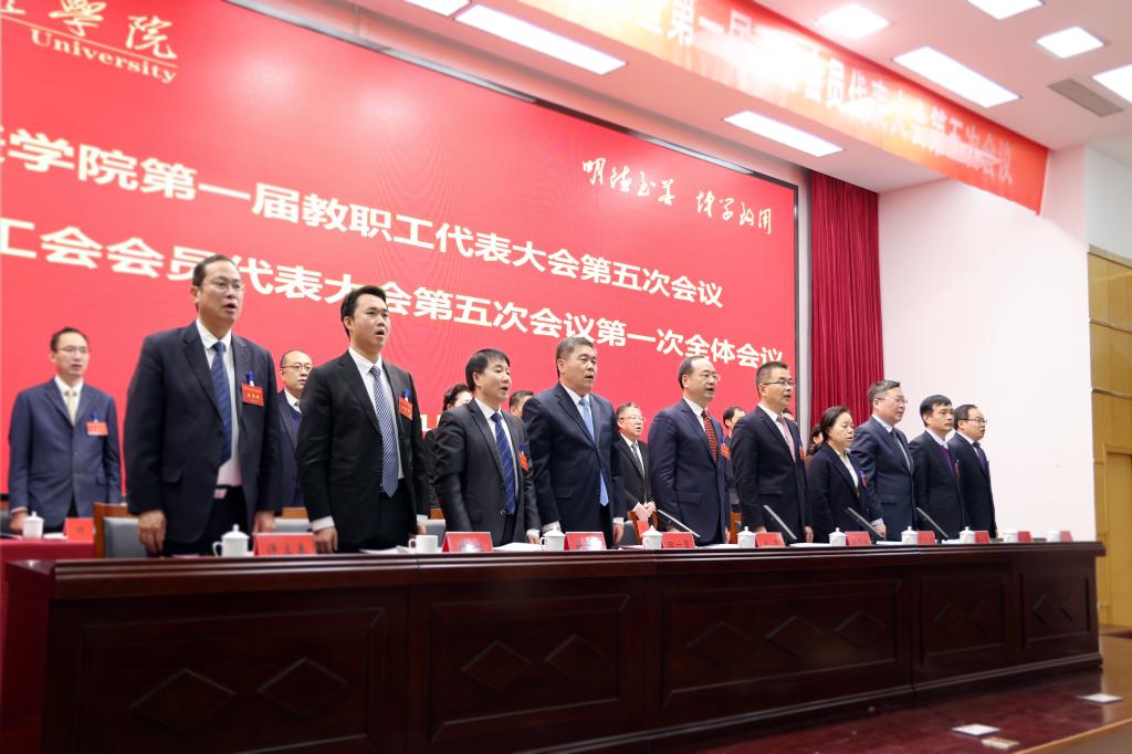 会议听取并审议通过潘志明校长所作的学校工作报告,审议通过了《第一届教职工代表大会第五次会议提案工作报告》《第一届工会会员代表大会第五次会议工会工作报告》《凝心聚力迎评估砥砺奋进谱新篇——致全校教职工倡议书》,并讨论了学校财务工作报告。