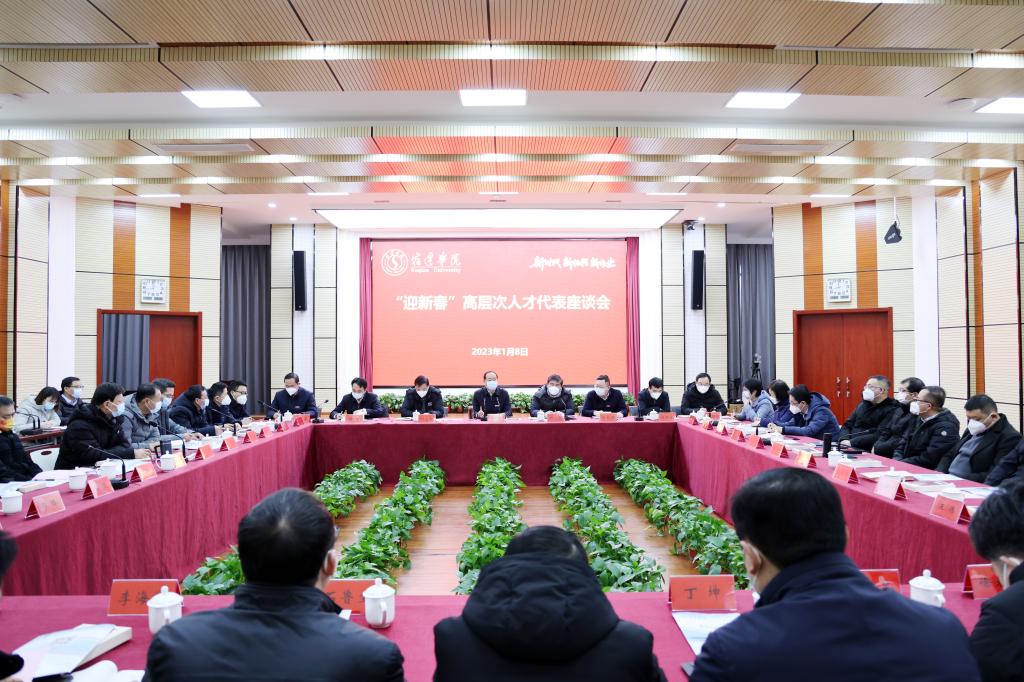 为践行“人才为要”办学理念,发挥高层次人才在学校高质量发展的领航作用,营造“唯才是引、唯才是举、唯才是用”的校园氛围,打造人才高地、人才福地,1月8日上午,我校在新图书馆一楼学术报告厅召开“迎新春”高层次人才代表座谈会。校党委书记徐德出席会议并讲话,在校校领导参加活动,副书记田一聚主持会议。