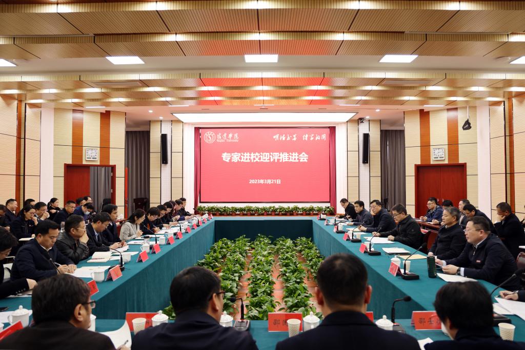 为全面做好迎接教育部专家组进校考察,充分展现18新利luck菲律宾 办学成绩、办学能力和办学水平,顺利通过合格评估,3月21日下午,我校在图书馆学术报告厅召开专家进校迎评推进会。校长潘志明,副校长施正荣,校纪委书记刘立新,副校长童毛弟、郭照冰,校党委常委、组织部部长许立春,校党委常委、宣传部部长李明建出席会议。会议由郭照冰副校长主持。