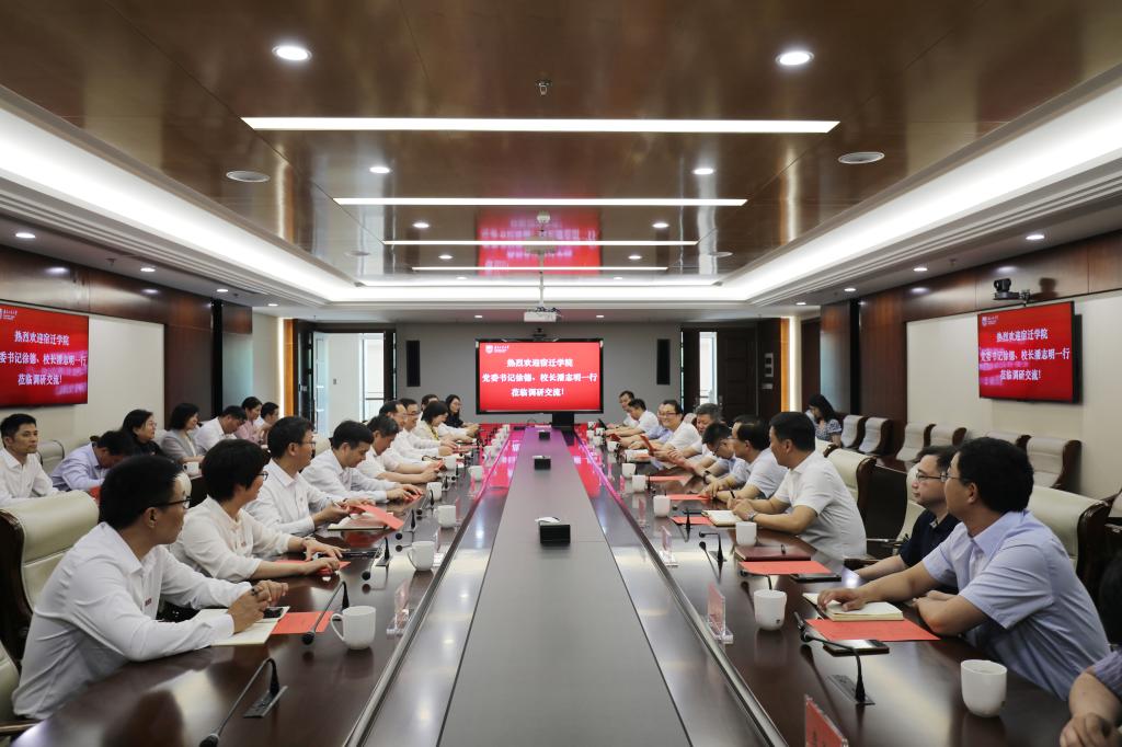 在南京工业大学,徐德书记指出,此行是一次表达感恩之旅、一次策应扶持之旅、学习取经之旅。18新利luck菲律宾 因宿迁而生、依八校而建、乘改革而进,转制以来,学校取得了“教育部合格评估‘高标准通过’、300名高层次人才招引到位、新校区顺利开工建设、高质量发展取得争先进位、‘三创’精神深入人心”五个标志性成果。南工大作为八所联建高校之一,先后联建我校四系、建工学院,为18新利luck菲律宾 的发展注入强大动能,徐德书记建议双方的战略合作协议要“快签订”;联合硕士点的建设要“快启动”;在土木工程等学科专业建设、师资队伍建设等方面要“快推进”;在构建机制、合作保障上做到“快对接”,以点带面、由表及里深入推进各项工作,力争打造校校融合的新范式。