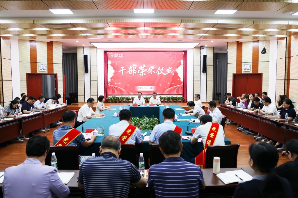 风雨忆同舟,薪火永相传。为进一步增强退休干部荣誉感、归属感和幸福感,激励广大干部干事创业激情,7月6日下午,我校在图书馆学术报告厅举行有关干部荣休仪式,校党委书记徐德出席会议并讲话,校长潘志明主持会议。