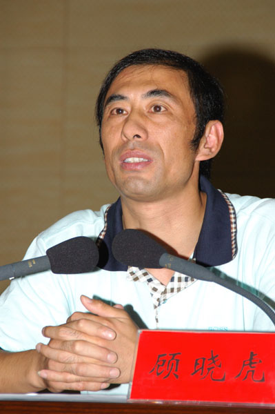 图二,院党委副书记、副院长顾晓虎在为学生作入学教育报告。