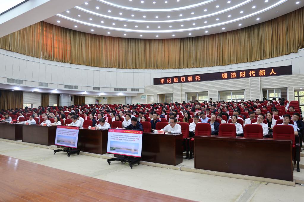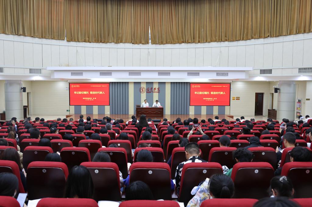 牢记殷切嘱托,锻造时代新人。为深入学习习近平总书记关于新时代青年工作的重要论述,全面贯彻党的教育方针,坚守为党育人、为国育才的初心使命,引导广大青年学子立志做有理想、敢担当、能吃苦、肯奋斗的新时代好青年,10月25日下午,我校在新图书馆二楼报告厅举办2023年思想政治教育“开学第一讲”专题报告会,校党委书记徐德讲授专题报告,校长潘志明主持会议。