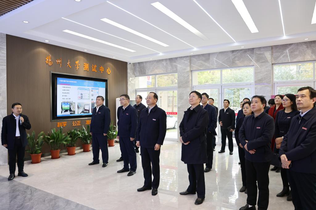 在扬州大学,考察团实地参观了扬州大学测试中心、扬州大学校友会。