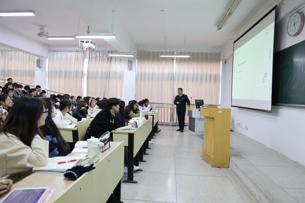 潘志明校长从自身的访学经历谈起,运用详实数据和典型案例,采用对比分析、问题研讨等方式引导学生全面理解大国格局变动,通过“台湾的历史经纬”“大国博弈中的台湾问题”“新时代解决台湾问题的总体方略”三个方面讲解,向同学们讲述台湾自古以来就是中国领土不可分割的一部分,海峡两岸同胞血肉相连,提出新时代党解决台湾问题的总体方略,强调统一是历史大势,是正道。他勉励同学们从政治的高度、历史的厚度、爱国的温度、实践的力度整体全面认识台湾问题,勉励广大学生心怀国之大者,做新时代有为青年。