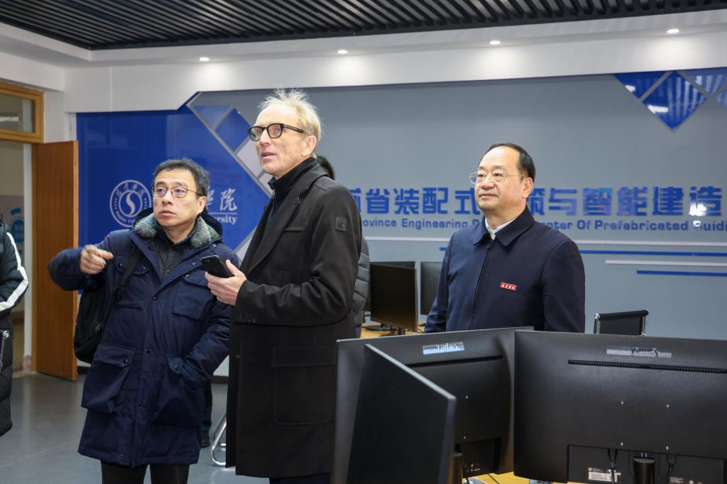 座谈会前,Kreulich Klaus副校长一行还实地参观了学校机电工程学院、建筑工程学院、京东现代产业学院以及洋河股份有限公司。